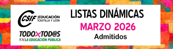 Interinos. PES y otros cuerpos. Listas extraordinarias dinámicas. Curso 25 / 26. Solicitudes del mes de marzo. Listados de admitidos y excluidos.